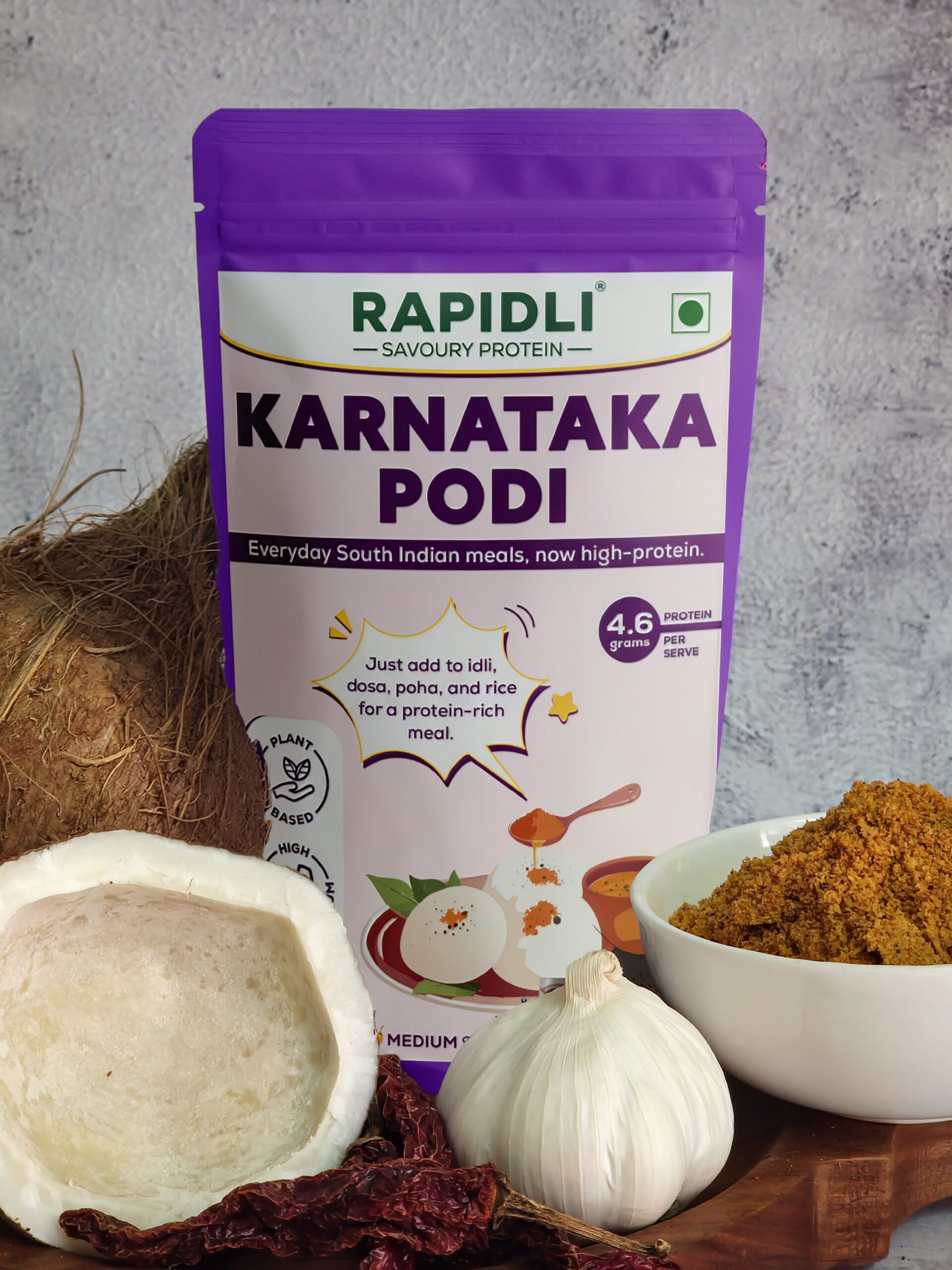 Podi: South India's Flavour Wizard! Our flavourful Karnataka Podi is made from roasted lentils, spices and coconut.